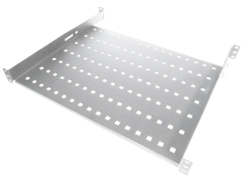 Półki pasujące do szaf w standardzie 19". Stanowią podstawę do instalacji urządzeń elektronicznych wolno stojących w szafach teleinformatycznych. Wykonane są z blachy stalowej malowanej proszkowo w kolorze szarym. Podstawa perforowana, cztery punkty mocowania.