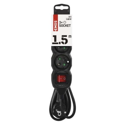 Emos Przedłużacz 3gn.1.5m.wył. (czar.) PC1311